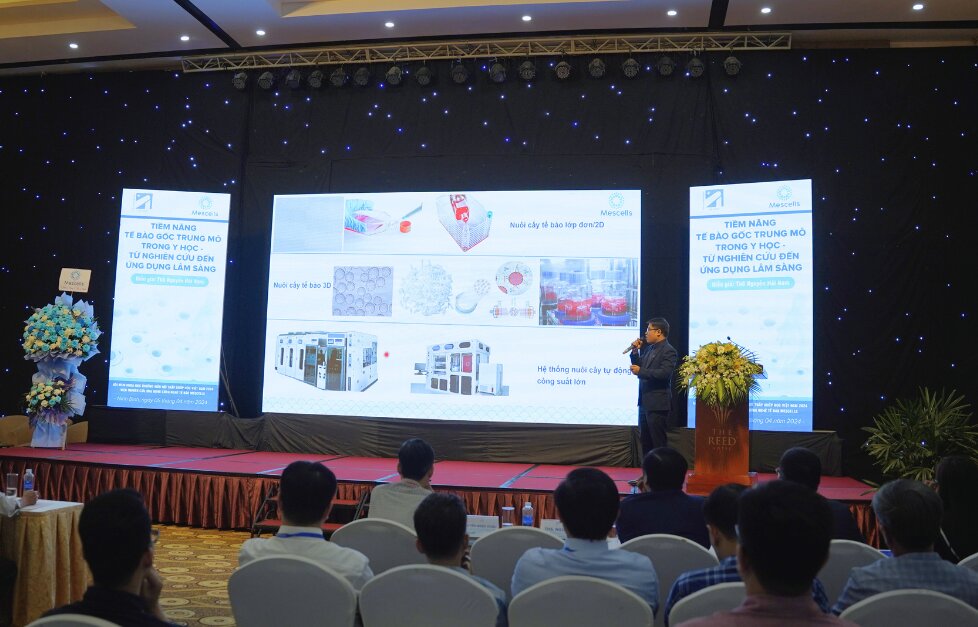 Trong bài báo cáo về “Tiềm năng tế bào gốc trung mô trong y học, từ nghiên cứu đến ứng dụng lâm sàng”, Thạc sĩ Nguyễn Hải Nam, Viện trưởng Viện Nghiên cứu Ứng dụng Công nghệ tế bào Mescells, đã cung cấp những kiến thức chuyên sâu về công nghệ tế bào gốc trung mô, cập nhật những ứng dụng mới nhất của công nghệ tế bào gốc trên thế giới trong y học lâm sàng. Đồng thời, thảo luận về cơ sở khoa học của công nghệ tế bào gốc trung mô trong ứng dụng lâm sàng.