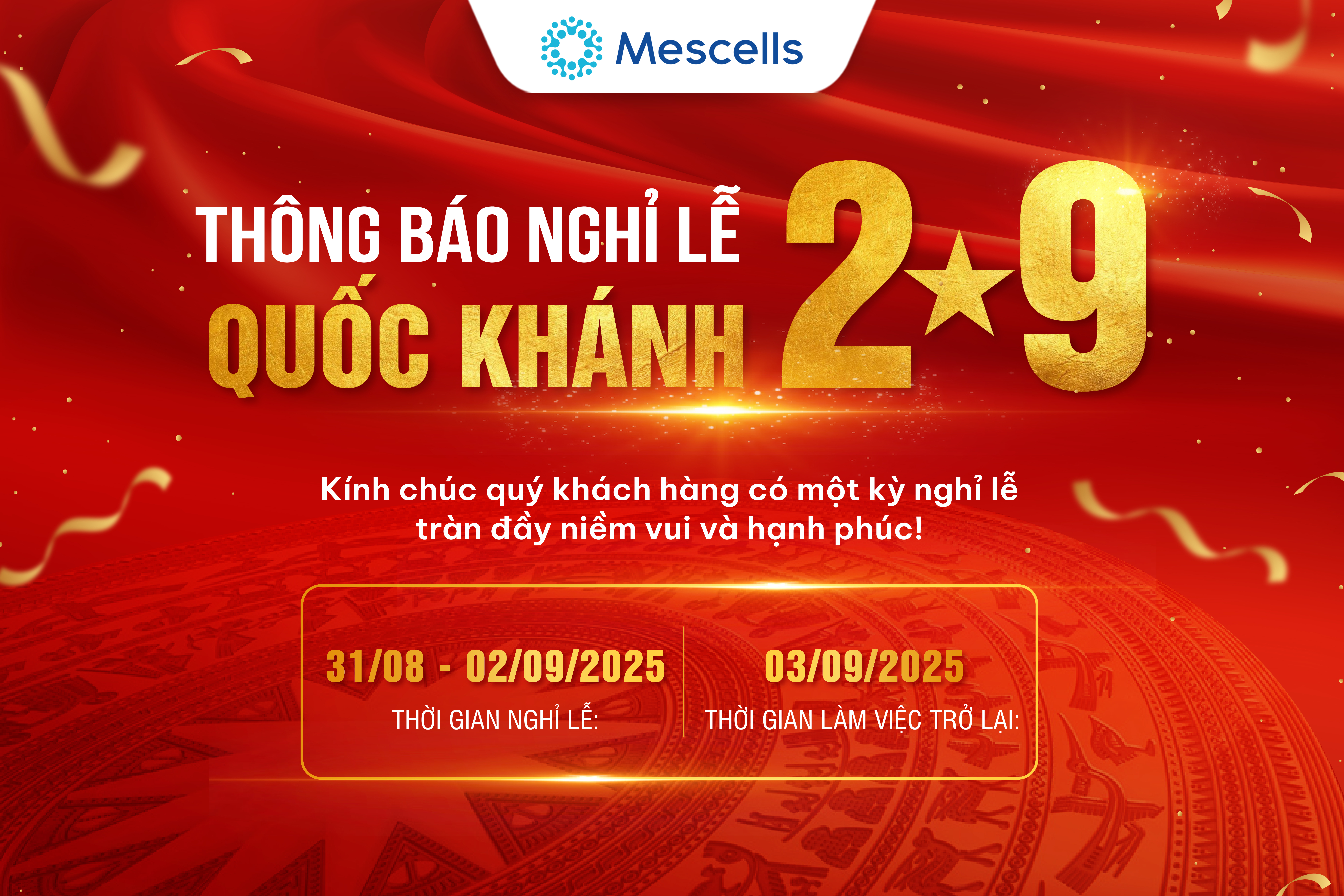 Hòa cùng niềm tự hào ấy, Viện Nghiên cứu Ứng dụng Công nghệ Tế bào Mescells xin trân trọng thông báo lịch nghỉ lễ Quốc Khánh như sau: